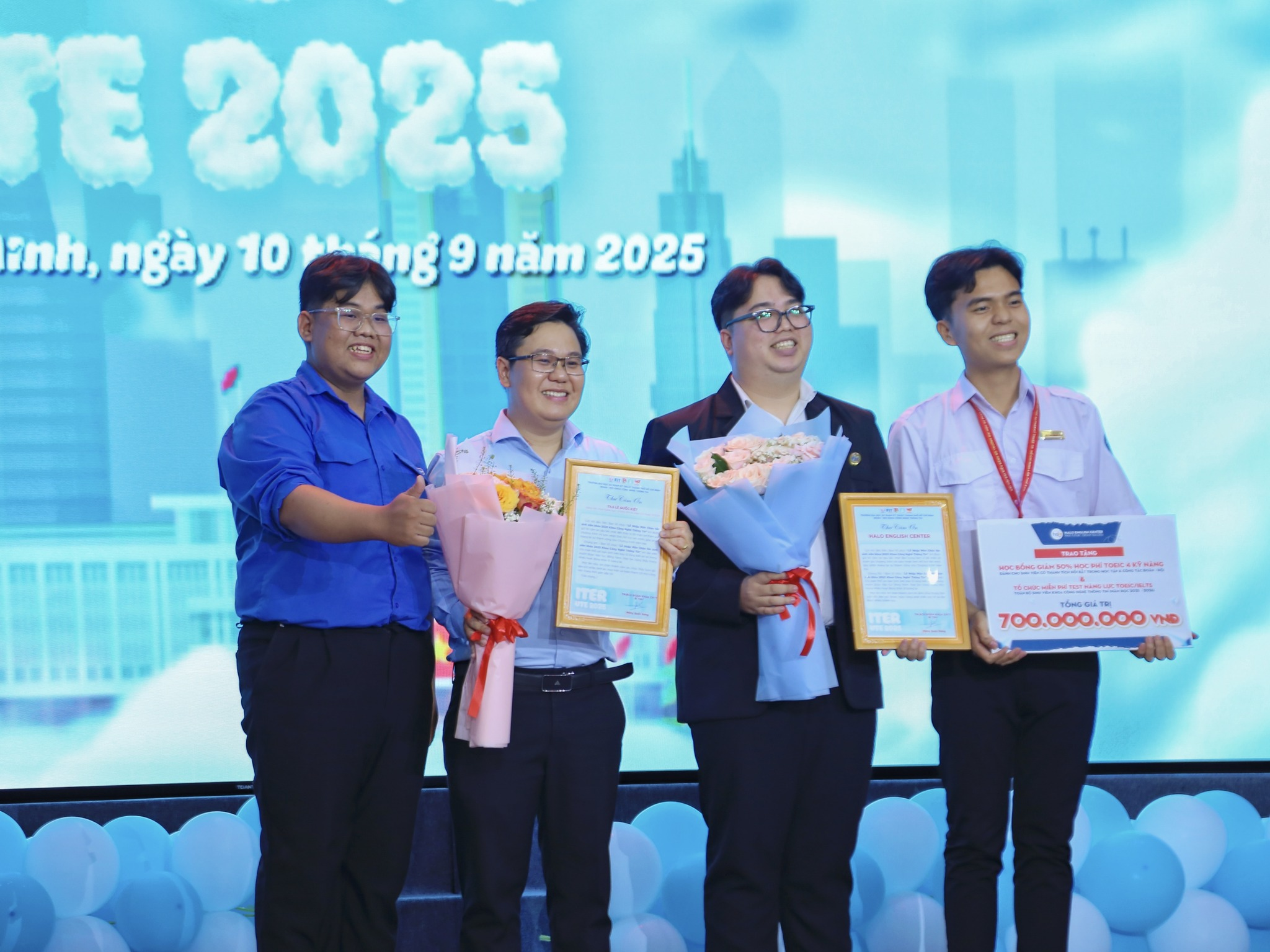 Tại buổi lễ, Halo trao tặng nhiều suất học bổng hấp dẫn dành riêng cho sinh viên FIT, nhằm khuyến khích tinh thần học tập, nỗ lực vươn lên và chủ động hội nhập quốc tế. Nổi bật là Học bổng 100% học phí toàn bộ lộ trình TOEIC 4 Kỹ năng dành cho Thủ khoa và Á khoa từng ngành, như một phần thưởng xứng đáng cho những nỗ lực học tập đáng ghi nhận.