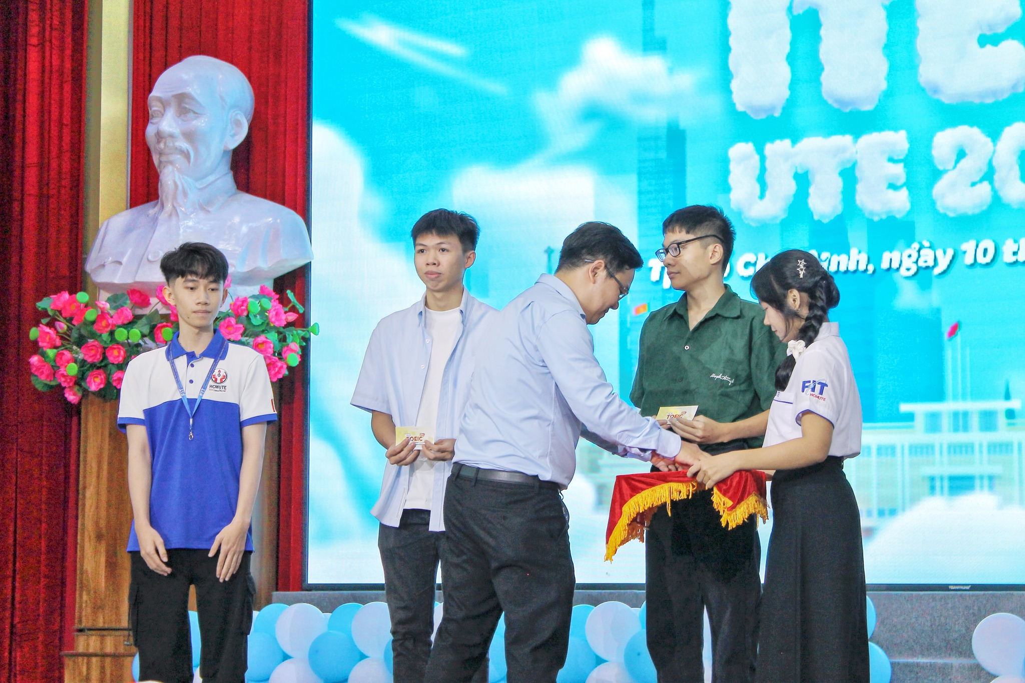 Bên cạnh đó, 50 suất học bổng 50% học phí thuộc chương trình “Cán bộ Đoàn – Hội tiêu biểu” cũng được trao tặng cho các sinh viên năng động, vừa học giỏi vừa tích cực trong hoạt động tập thể. Ngoài ra, 100 suất học bổng “Touch the Future” với 40% học phí TOEIC 4 Kỹ năng được thiết kế riêng cho sinh viên Khoa Công nghệ Thông tin, tạo điều kiện để các bạn nâng cao trình độ tiếng Anh – kỹ năng không thể thiếu trong thời đại công nghệ số.